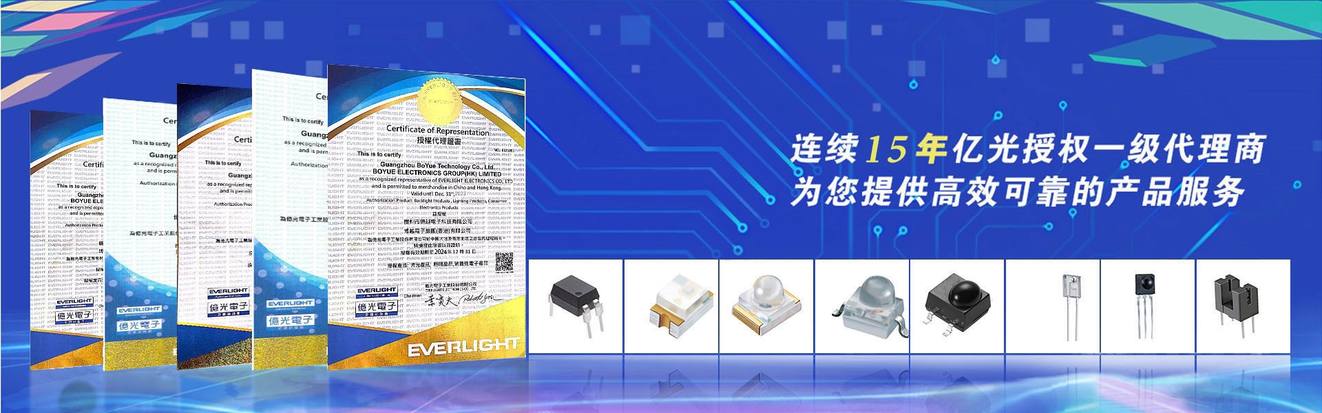廣州市博越電子科技有限公司廣州市博越電子科技有限公司是一家以電子科技為核心,億光一級(jí)代理,為國內(nèi)廣大用戶提供億光紅外線、ITR接收頭、槽型光電開關(guān)、照明燈珠、紅外線光電產(chǎn)品、光感IC、光耦、可見光燈珠等電子元器件產(chǎn)品的科技型服務(wù)企業(yè),公司總部在中國的南大門-廣州南沙自貿(mào)區(qū),在北京、上海、武漢設(shè)立辦事機(jī)構(gòu),并以此為中心業(yè)務(wù)范圍輻射全國。博越電子是全球LED品牌企業(yè)-臺(tái)灣億光電子(EVERLIGHT)的一級(jí)代理,是億光電子拓展中國市場(chǎng)而建立的戰(zhàn)略合作伙伴,是中國專業(yè)的合作商之一。